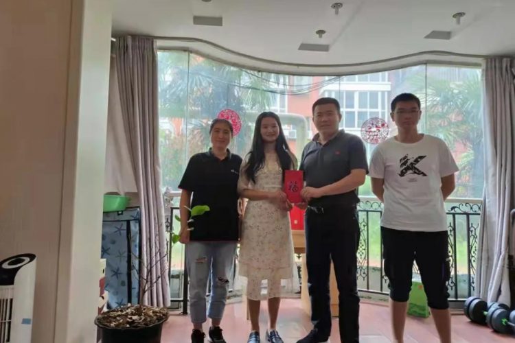 2021年9月4日,中沃门业创始人来到位于开封市徐金岗的家中,将1000元助学红包亲手交到徐金岗女儿徐梦瑶的手中,向她表示热烈祝贺,祝贺她熬过十年寒窗,以文化课476分的优异成绩被湖北大学播音与主持艺术专业金榜题名!