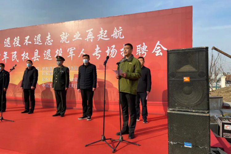 春风送岗惠军民,精准服务真助企。 2月21日上午,民权县举办2022年“退役不退志 就业再起航”退役军人专场招聘会在高新区公共就业实训基地隆重举行。商丘市退役军人事务局副局长闫红兵、县人武部政委潘俊琦、高新区管委会副主任张玉栋、县人社局局长司永福出席现场招聘会。